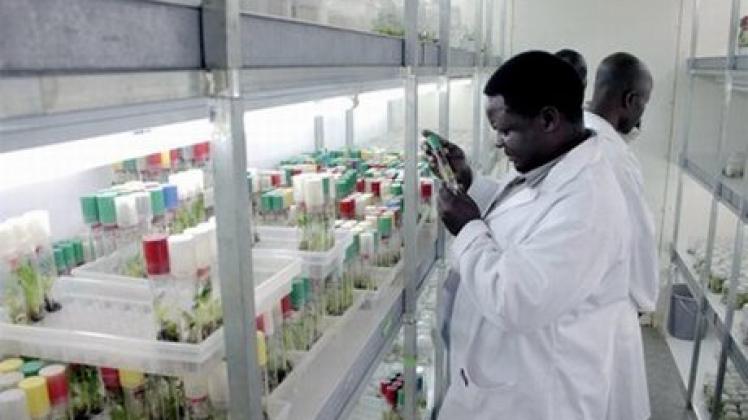 In Uganda, la ricerca mediante tecnologie di modificazione genetica (OGM) interessa colture chiave come banane (contro l’avvizzimento batterico, per la resistenza ai nematodi e l’aumento del valore nutrizionale), patate dolci .