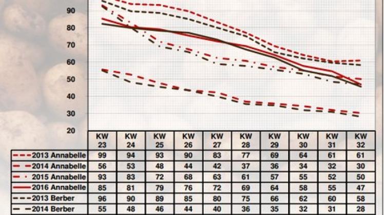 Die Händler waren gezwungen, ihre Forderungen abzusenken, zum Teil erheblich zu reduzieren. Selbst durch diese merklichen Verbilligungen gewann das Geschäft für gewöhnlich nicht hinlänglich an Schwung. Bloß manchmal konnten die Vergünstigungen als Basis dienen, um bessere Verkaufszahlen zu erzielen und drängende Überhänge zu vermeiden. Vorrangig wurden Annabelle, Berber und Marabel vertrieben. Neben Leyla kamen inzwischen auch Sieglinde aus Kulturen in dunklen Moorböden. Für beide mussten die Kunden entsprechend etwas tiefer in die Tasche greifen: 15,- bis 19,- € kostete der 25-kg Sack.