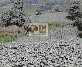 En la imagen se observa un cultivo de papa totalmente cubierto por la ceniza que lanza el Volcán Turrialba desde hace varias semanas de forma casi continúa.