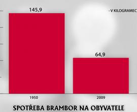 Spotřeba jednotlivých druhů potravin v Česku se za posledních šedesát let dramaticky změnila. Jíme o více než polovinu méně brambor, naopak se znásobila spotřeba ovoce, hlavně toho dováženého z tropů. V posledních letech klesá spotřeba minerálek.